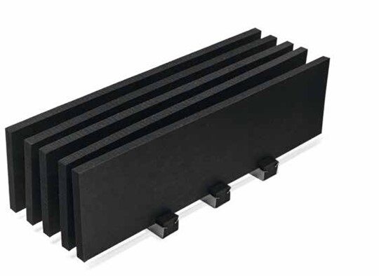 Hangelnyelő rendszer falakhoz és mennyezetekhez, ahol a poliészter szál lamellákban van formázva, így a nagyobb felületeken is méretfolytonosságot biztosít. Kiváló hangelnyelő tulajdonságú sávos elemek, melyek mind fali-, mind mennyezeti beépítésre alkalmasak. Rendkívül dekoratív kinézetük miatt a modern helyiségek dísze lehet. Antiallergén, újrahasznosított alapanyagú Fiber-panelekből készül.
